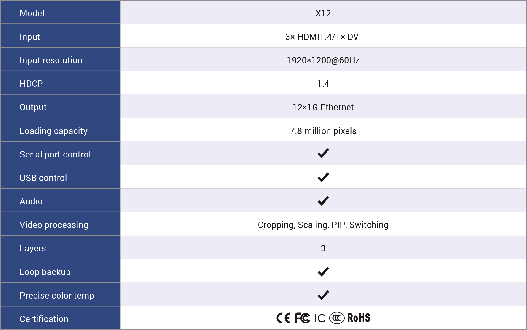 Procesor multimedialny X12 marki Colorlight to zaawansowane urządzenie zaprojektowane do zarządzania treściami na wyświetlaczach LED i LCD w najwyższej jakości. X12 jest idealnym rozwiązaniem dla dużych instalacji multimedialnych, gdzie precyzyjne odwzorowanie obrazu i szczegółowość są kluczowe, na przykład w przestrzeniach komercyjnych, wydarzeniach na żywo czy wystawach.